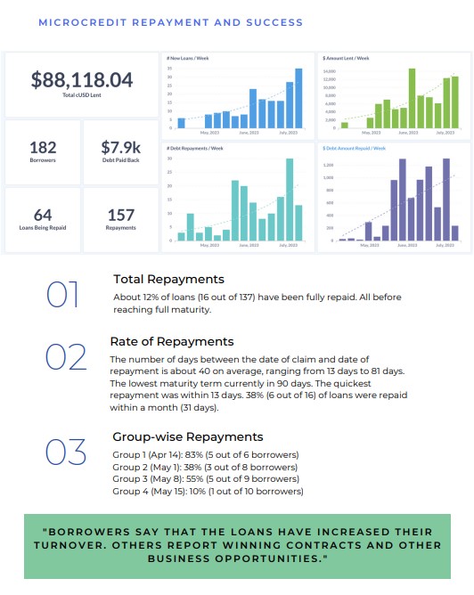 The dashboard is a valuable tool for Impact Market because it provides them with a clear view of the progress of their microcredit program and the impact of their loans. The dashboard also helps them to identify areas where they can improve their program.