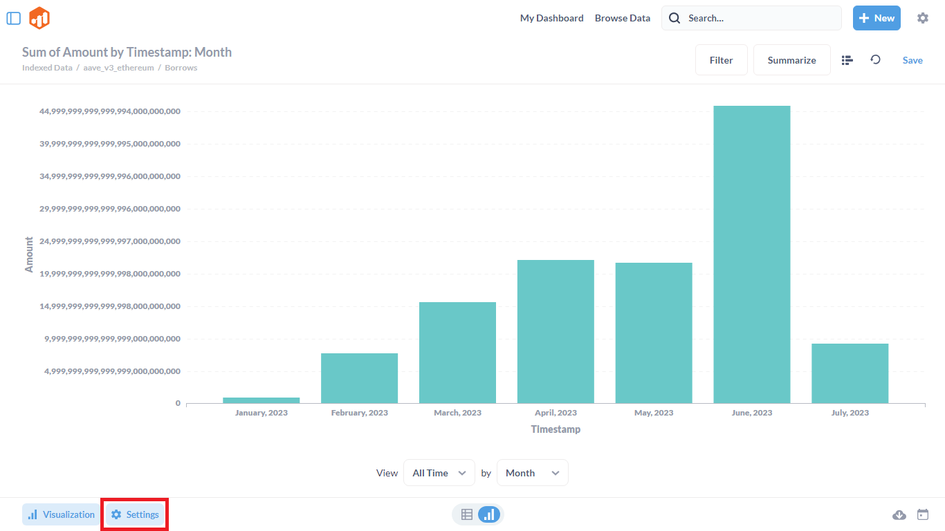 1. After selecting the dataset from Indexed data, locate the Settings button at the bottom left corner of the page.